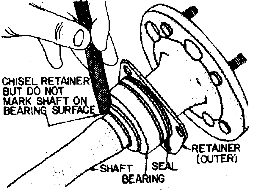 8. With axle shaft removed from housing, split bearing retainer with a chisel, Fig. 4.