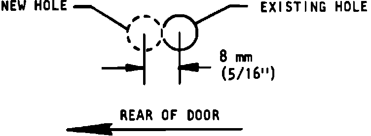 4. Using a 9 mm (11/32") drill bit, drill a new hole 8 mm (5/16") rearward of the existing hole at each location (figure 1).