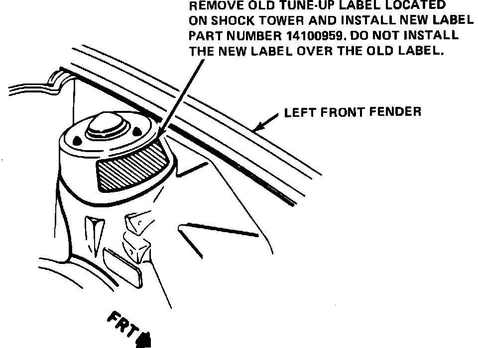 5. Remove old tune-up label located on shock tower and install new label, part number 14100959. Do not install the new label over the old label. (Refer to Figure 2).