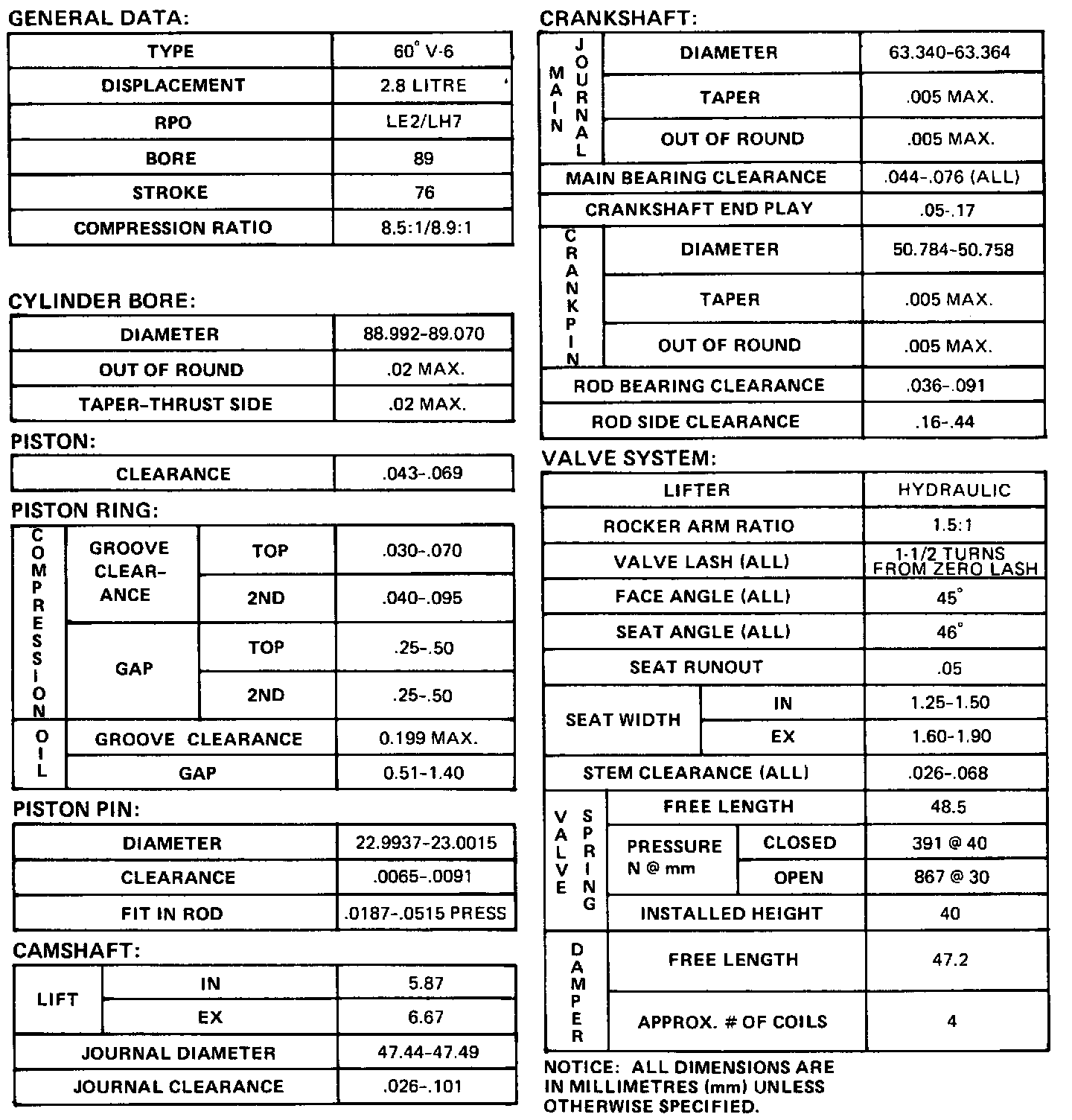 Engine Specifications: