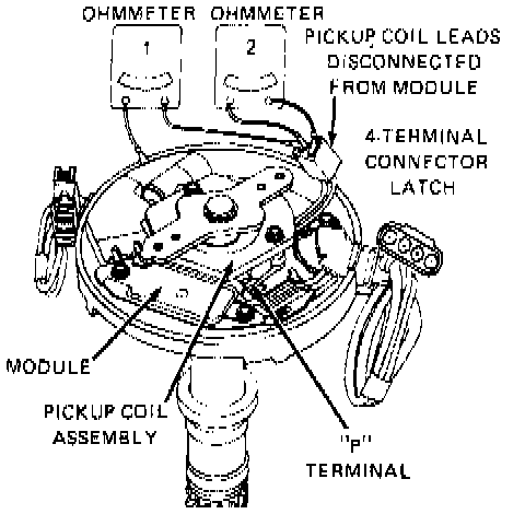 1. Remove distributor rotor, then disconnect pickup coil leads from module.