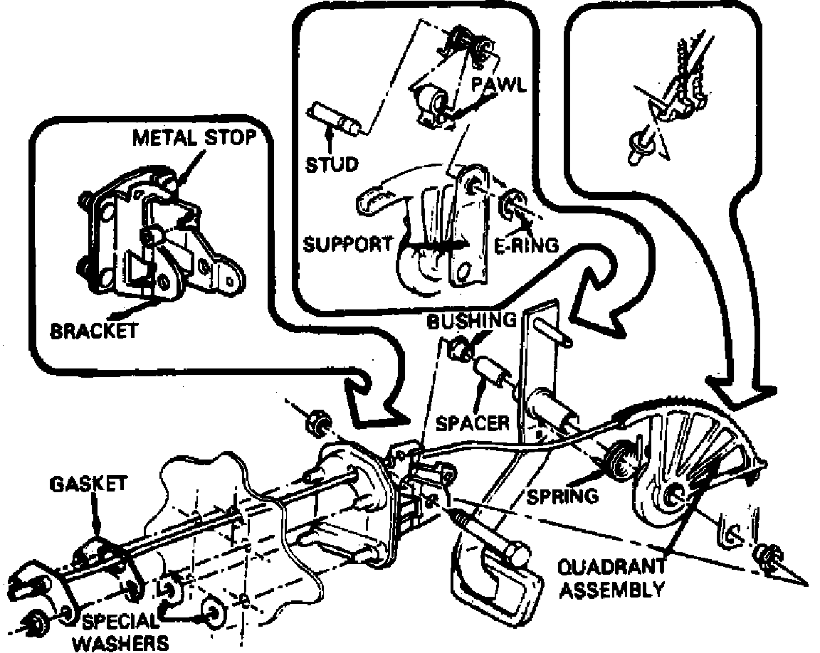 a. Depress the clutch pedal and observe if the pawl firmly engages the teeth of the quadrant.