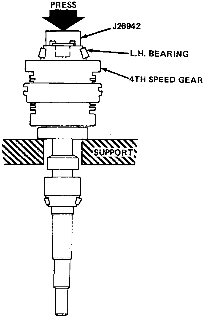 5. Install 4th gear on shaft, then press bearing onto shaft usin tool No. J-6133A. On 198-85 models, the 4th gear and bearing may be slid onto the input shaft.