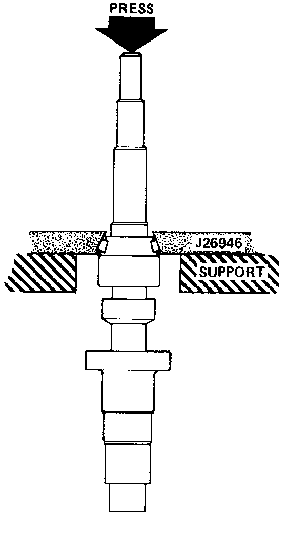 4. Using tool No. J-26946, press input shaft bearing from input shaft.