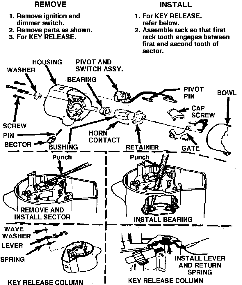 Fig. 5 Windshield wiper switch removal & installation. Tilt column: