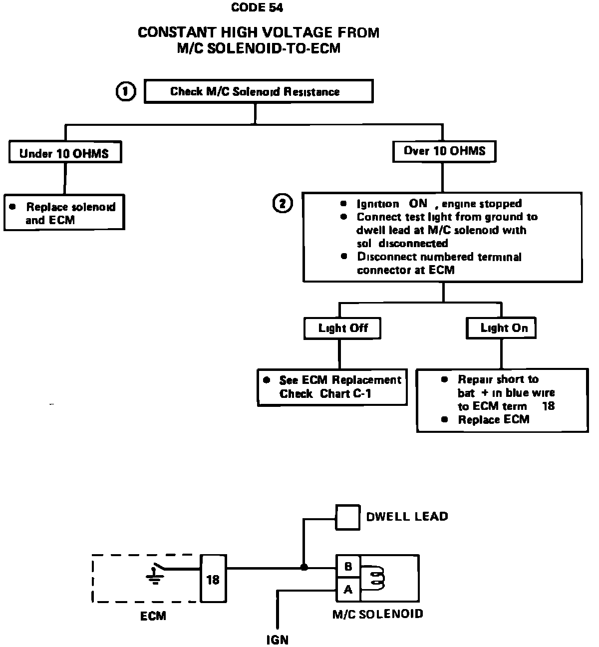Code 54 Indicates Constant High Voltage at ECM Terminal 18