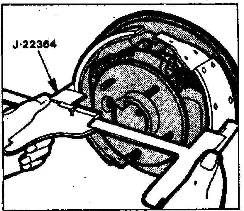 3. Rotate the gauge slightly around the shoes to insure that the gauge contacts the linings at the largest diameter.