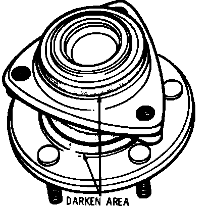The front wheel bearing is a sealed unit bearing. The bearing cannot be adjusted or repacked. There are darkened areas on the bearing assembly. These darkened areas are from a heat treatment process and do not indicate need for bearing replacement, Fig. 8.