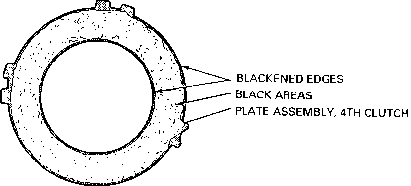 Replace the 4th clutch reaction plates if severely warped. Replace the 4th clutch reaction plates, forward clutch waved plate, or the lo and reverse waved plates if they have obvious large overheated, discolored areas that mate to the fiber material plate. Heat discoloration on the plate back side (non-fiber mating surfaces) should be considered normal, unless the plate is warped.