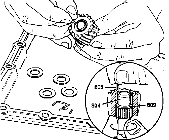 5. Install remaining 2 washers (807) (on top of pinion gear). (Figure 7)