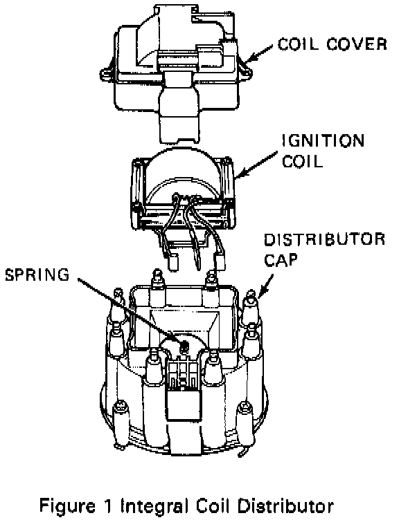 ^ The ignition coil is mounted in the distributor cap on most engines. Figure 1.