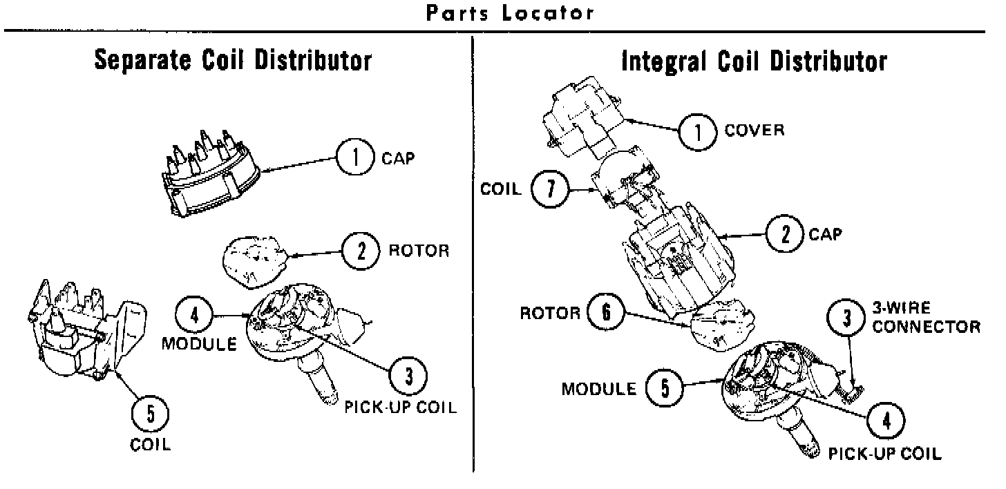 ^ Some 4-cylinder and L-6-cylinder ignition coils are mounted outside of the distributor but are different in appearance from previously standard ignition coils.