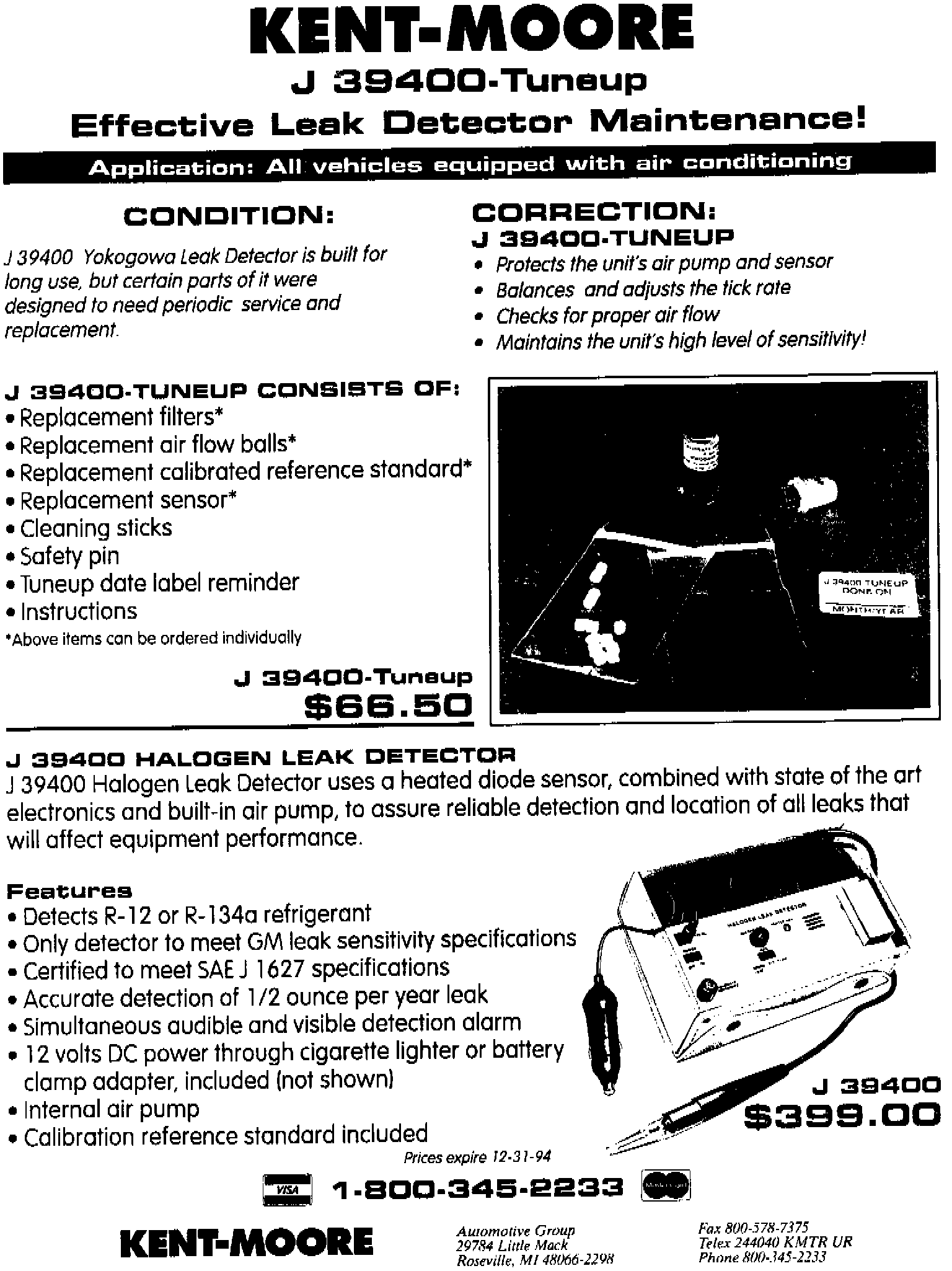 A new maintenance kit, P/N J 39400-TUNE-UP is available from Kent-Moore Tool, which contains the following:
