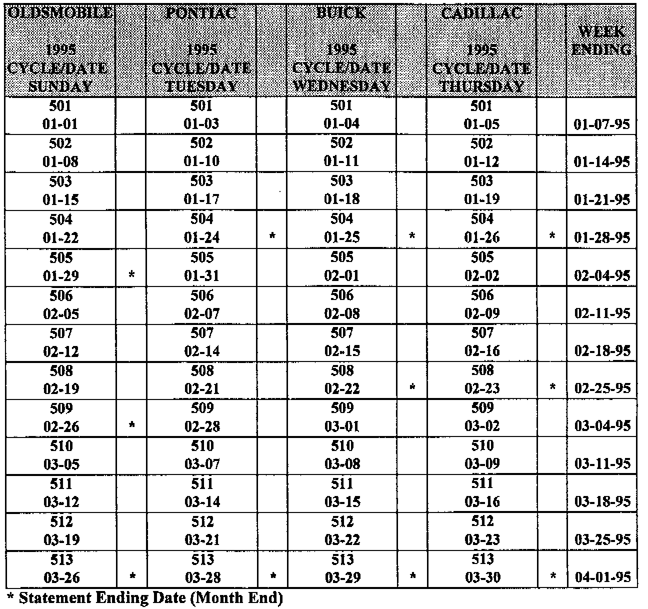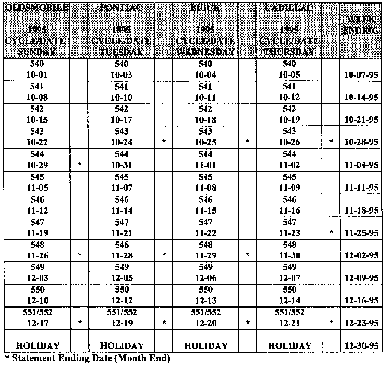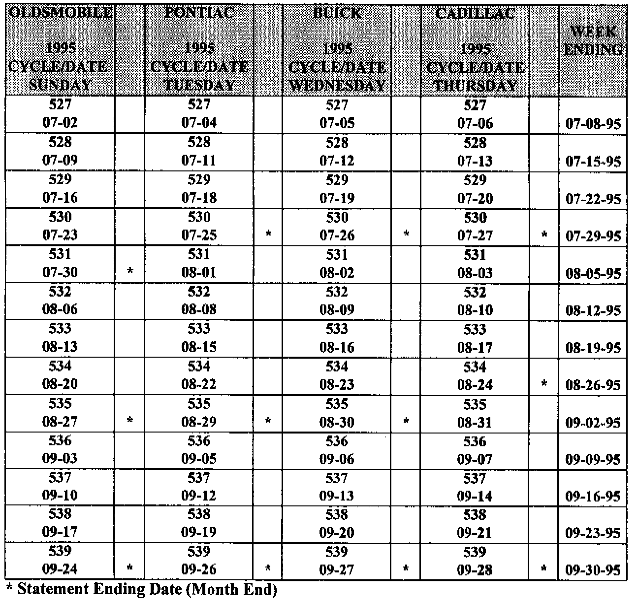 Enclosed is the General Motors Warranty claims validation schedule with cycle numbers. All credit memos will be dated on the actual date of processing. It you have any questions concerning the new cycle schedule, contact your Divisional Service Representative.