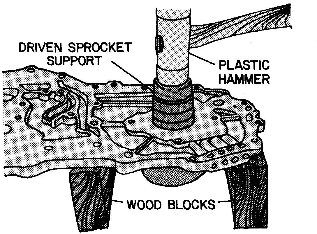 8. Inspect drive sprocket support oil seal rings. Do not remove them unless replacement is required. Drive and driven support housing assemblies are pressed into an removed with case cover. Do not remove them unless replacement is required.