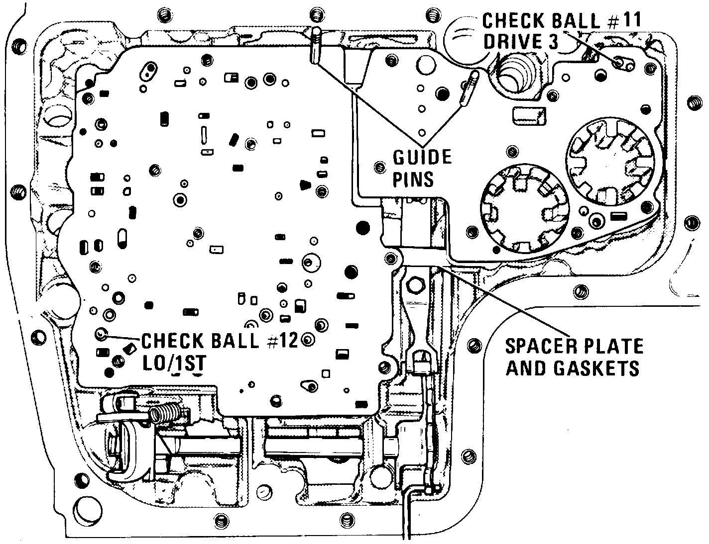 4. Position spacer plate to case gasket onto case, then place valve body spacer plate onto gasket marked