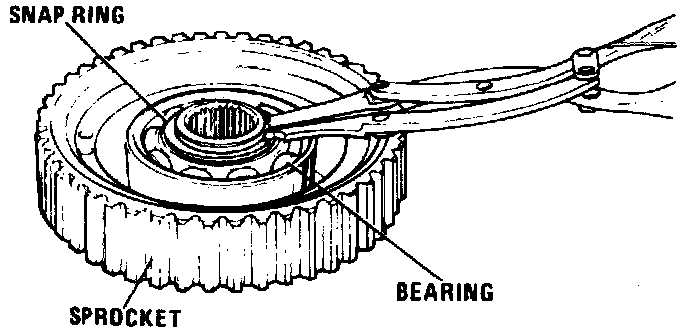 d. Install sprocket to bearing assembly snap ring into groove in sprocket hub.