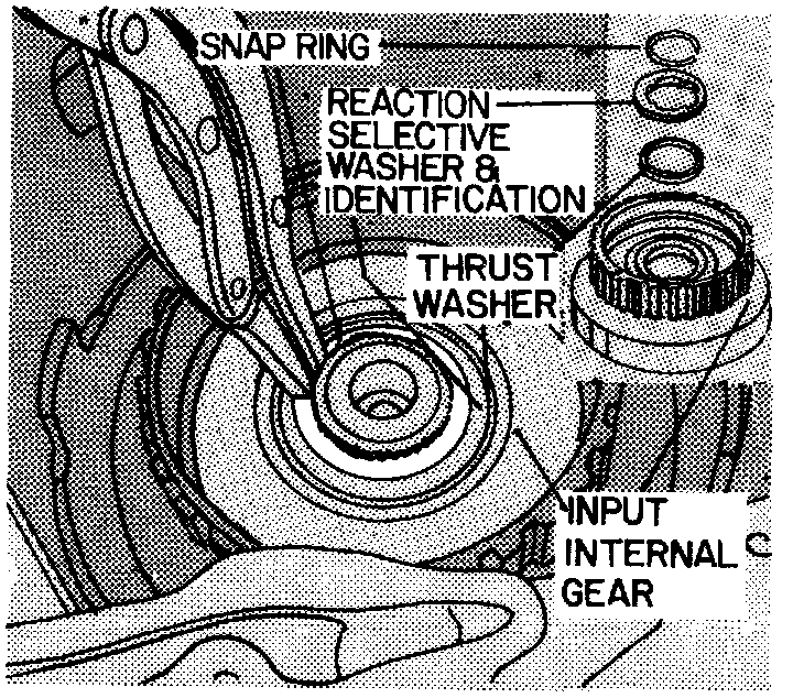 2. Inspect output shaft to reaction selective washer snap ring for damage or distortion.