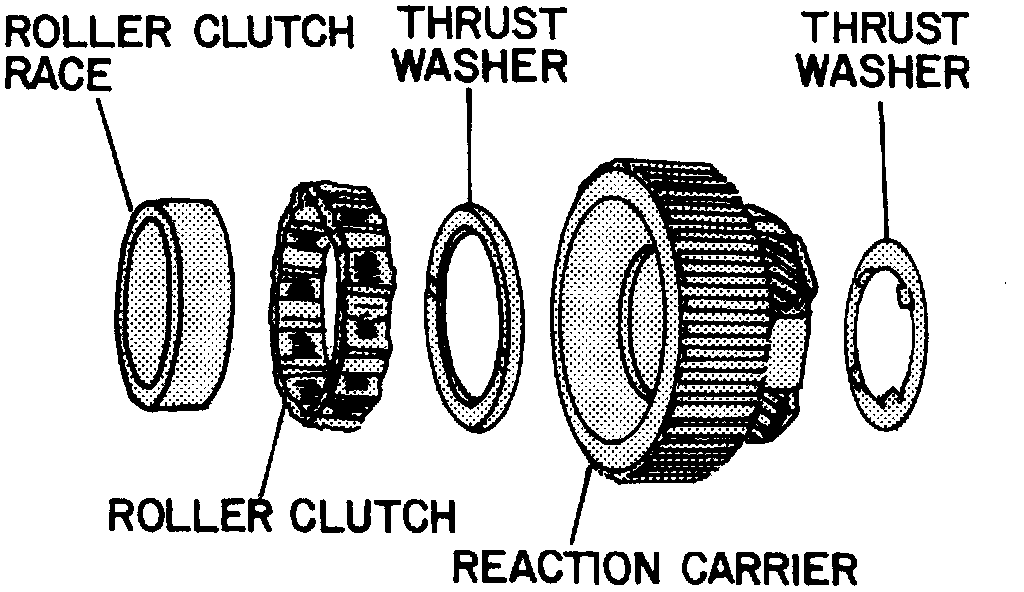 3. Remove and inspect reaction carrier to clutch thrust washer for scoring or excessive wear.