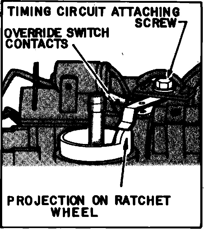 f. If override switch contacts are not held open, check for loose or defective pulse timer or improperly adjusted override switch.
