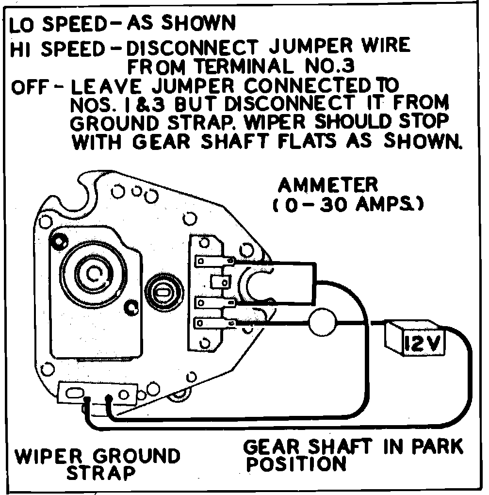 2. Grounded wire between motor terminal 3 and wiper switch.