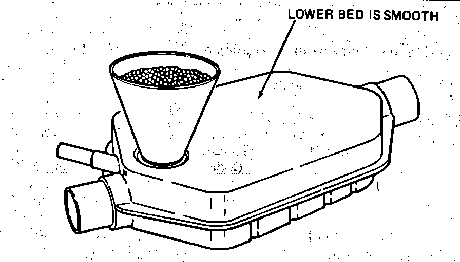 10. Using funnel J-34155-3 pour the sifted beads into the lower bed of the new converter. If additional beads are required to completely fill the lower bed, it will be necessary to obtain a lower bed bead kit from the parts department. Excess beads from the kit should be saved in a clean container for future use.