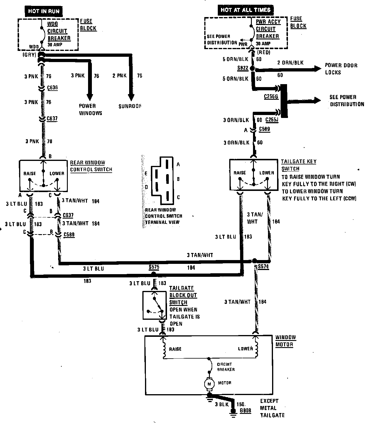 Tailgate Power Window Wiring Circuit: