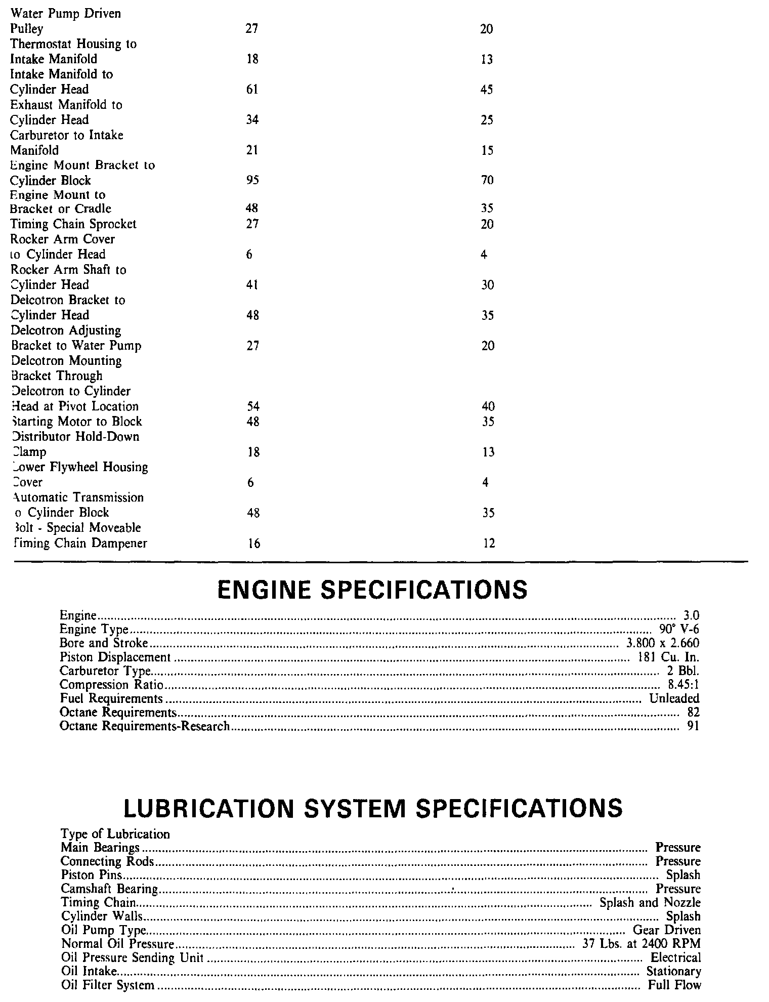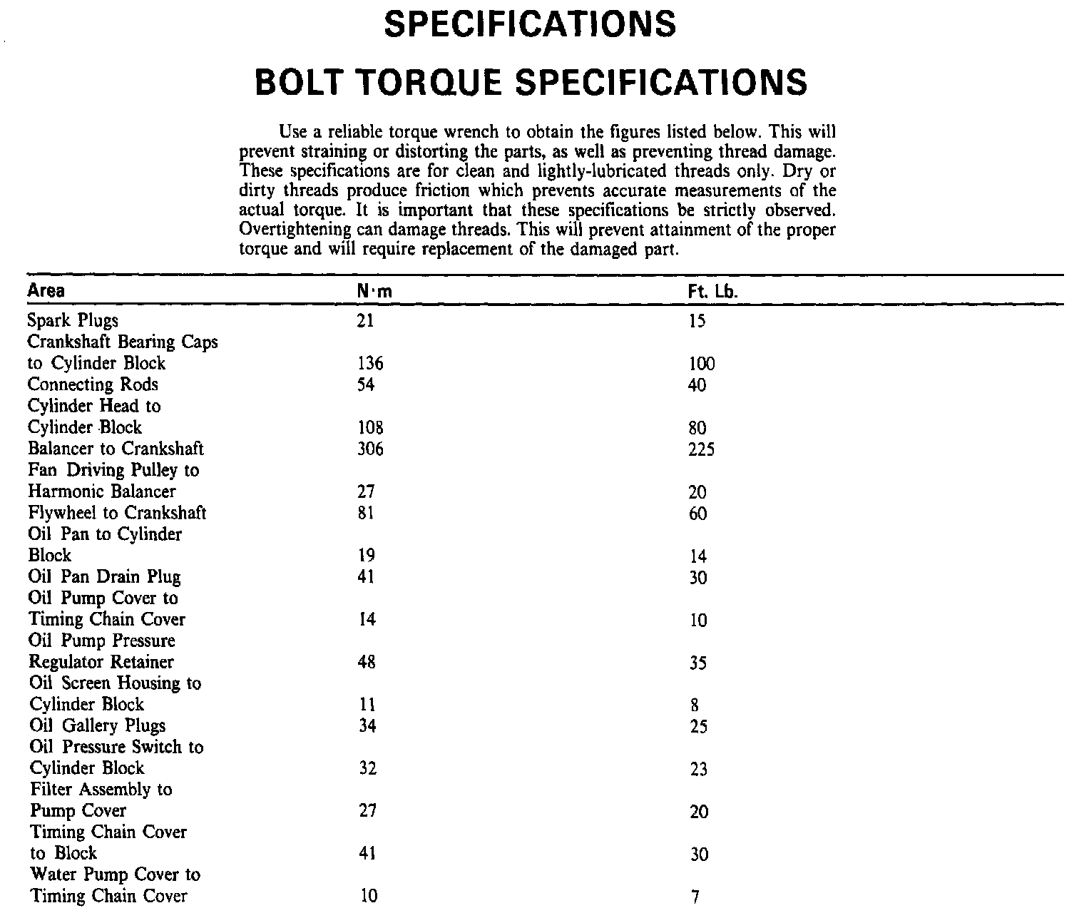 Continued Torque & Engine Specifications: