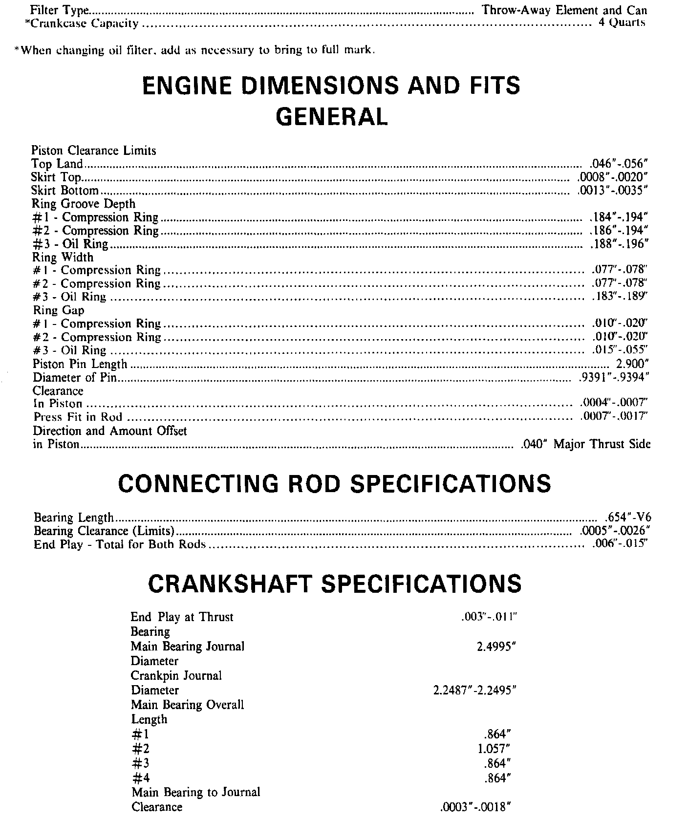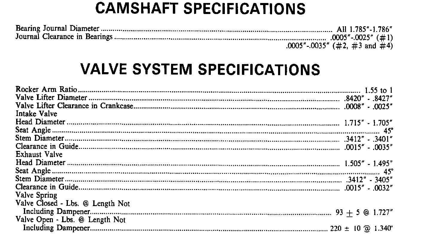 Continued Engine Specifications:
