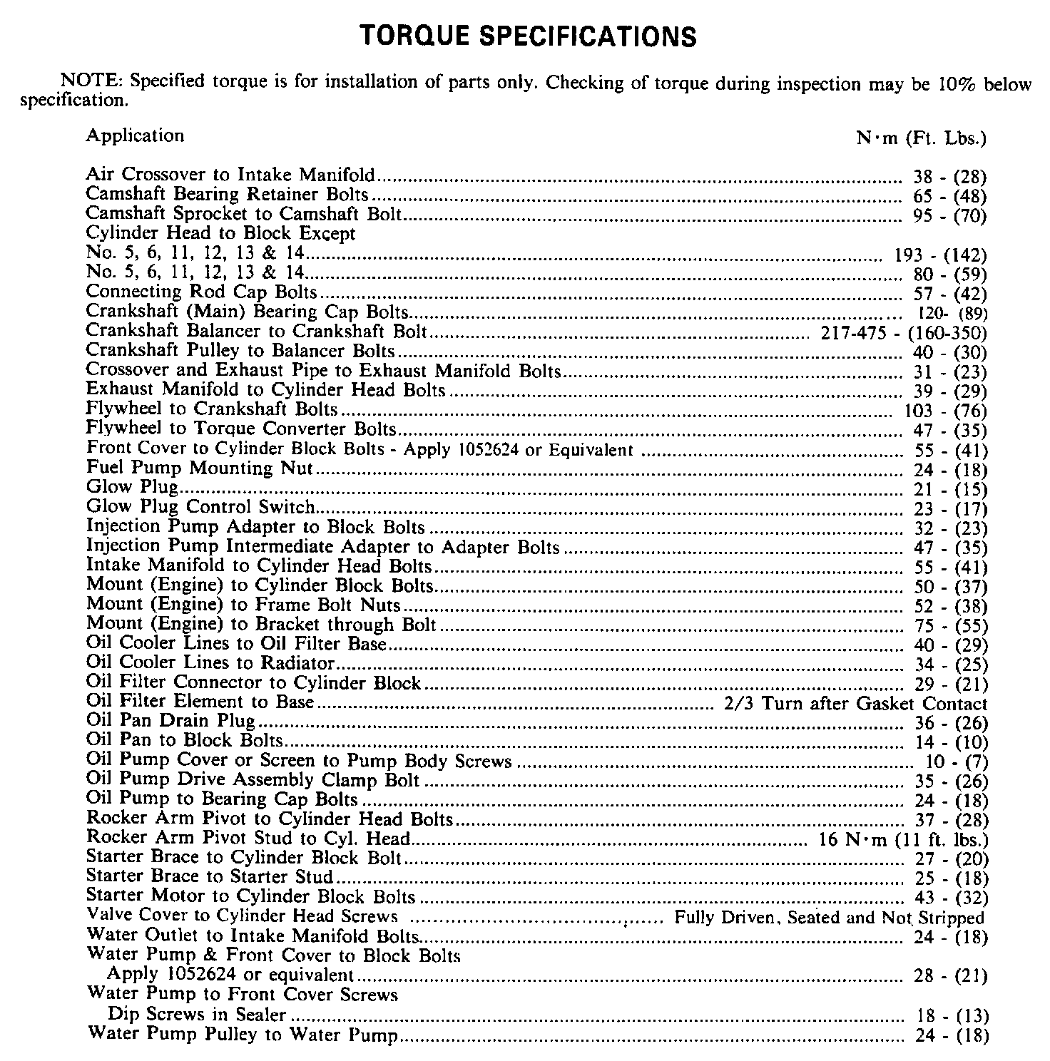 Torque Specifications: