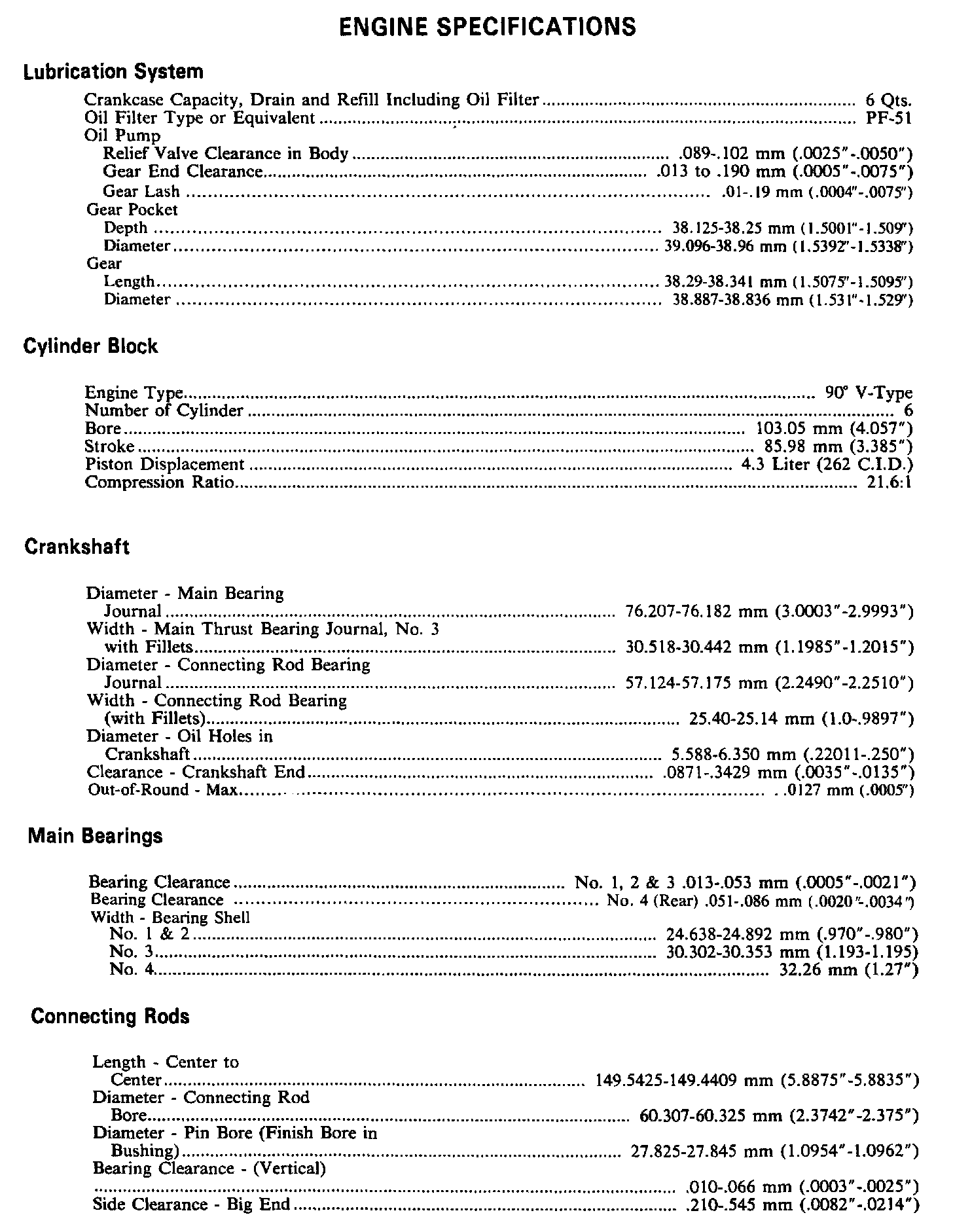 Continued Engine Specifications: