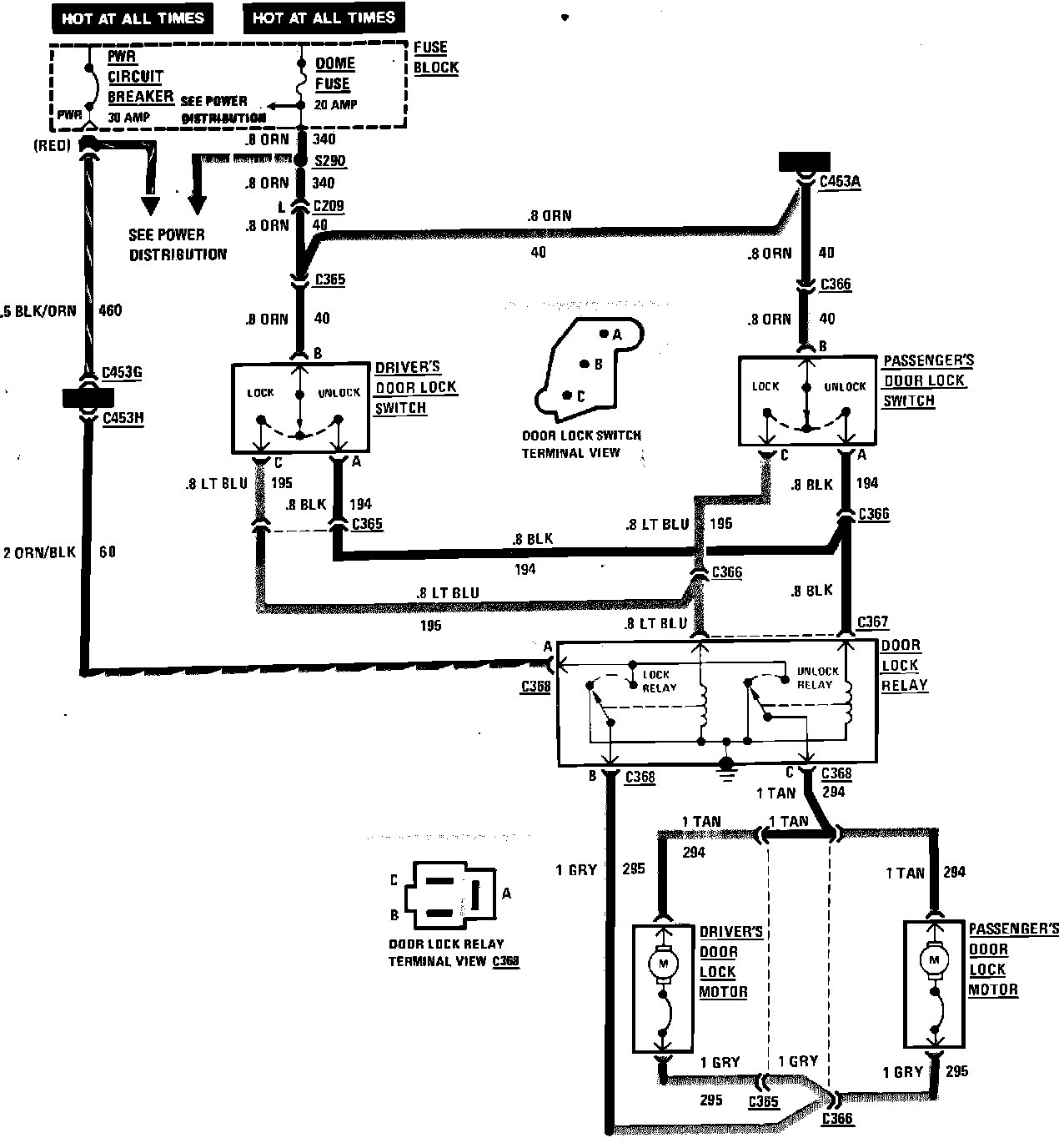 Fig. 399 Power Door Locks Wiring Circuit (2 Door). 1983 Cutlass: