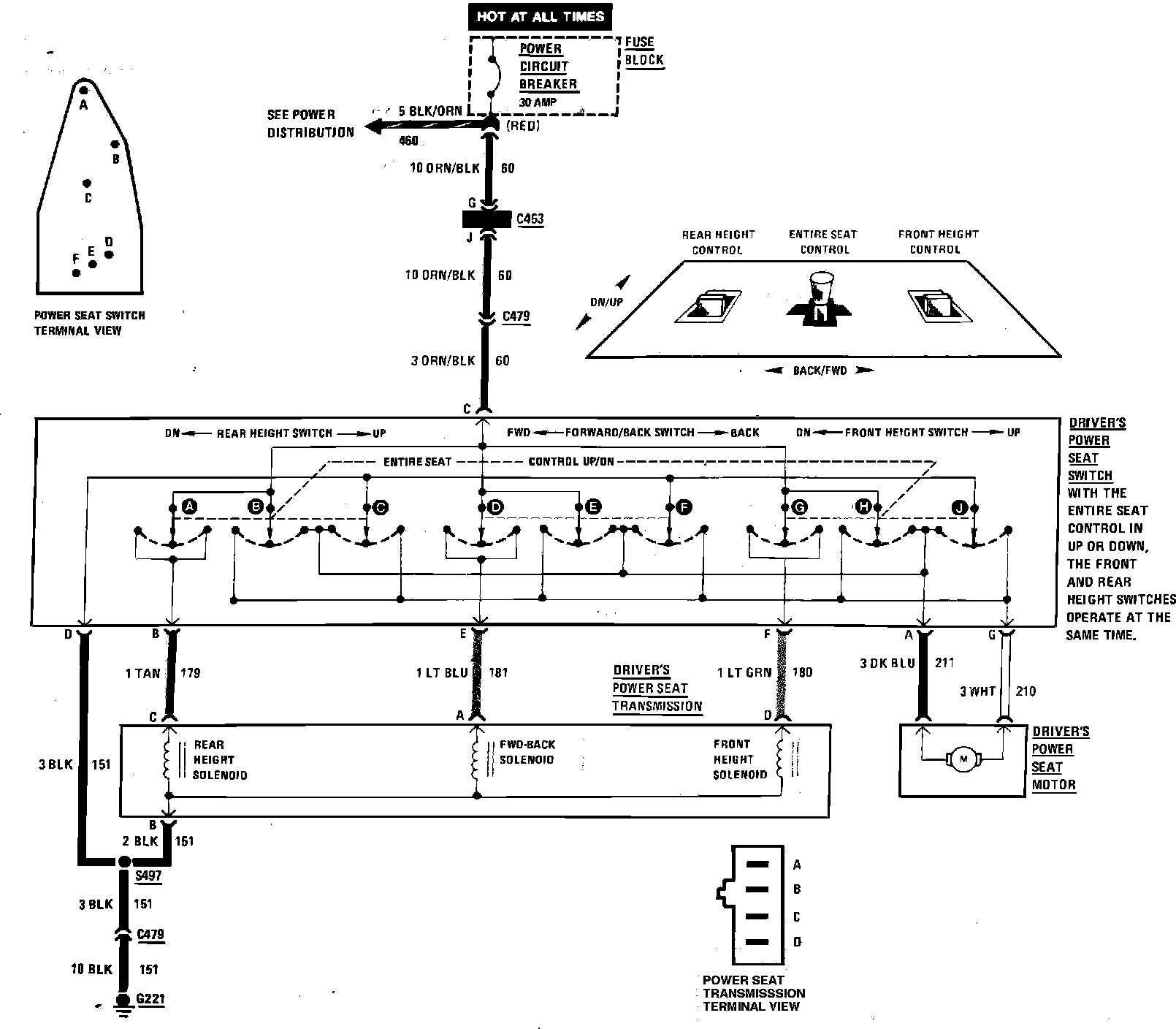 Fig. 409 Power Seat Wiring Circuit. 1983 Cutlass:
