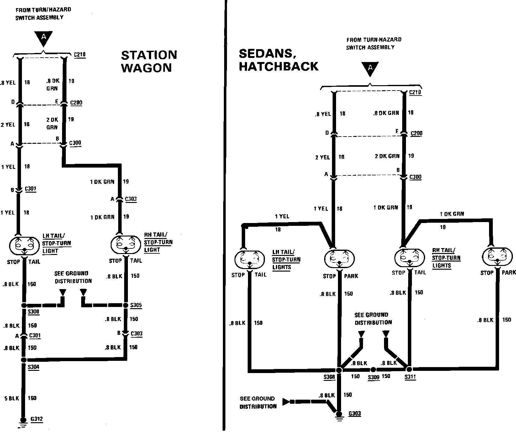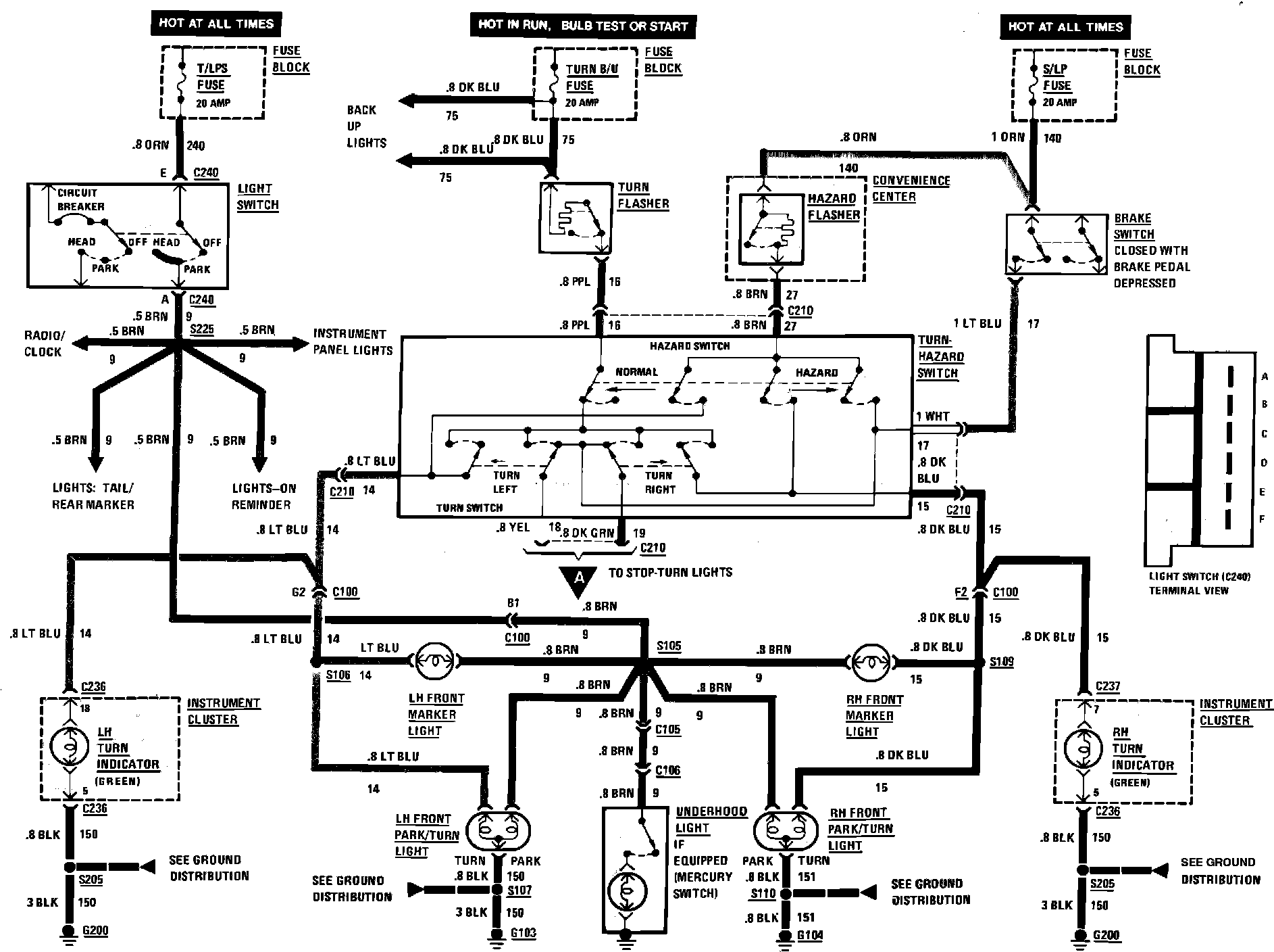 Front Marker, Front Park, Hazard Stop & Turn Signal Lamp Wiring Circuit: