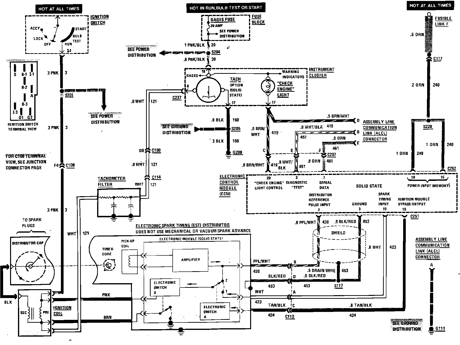 Throttle Body Injection Wiring Circuit (Check Engine Light & Ignition System):
