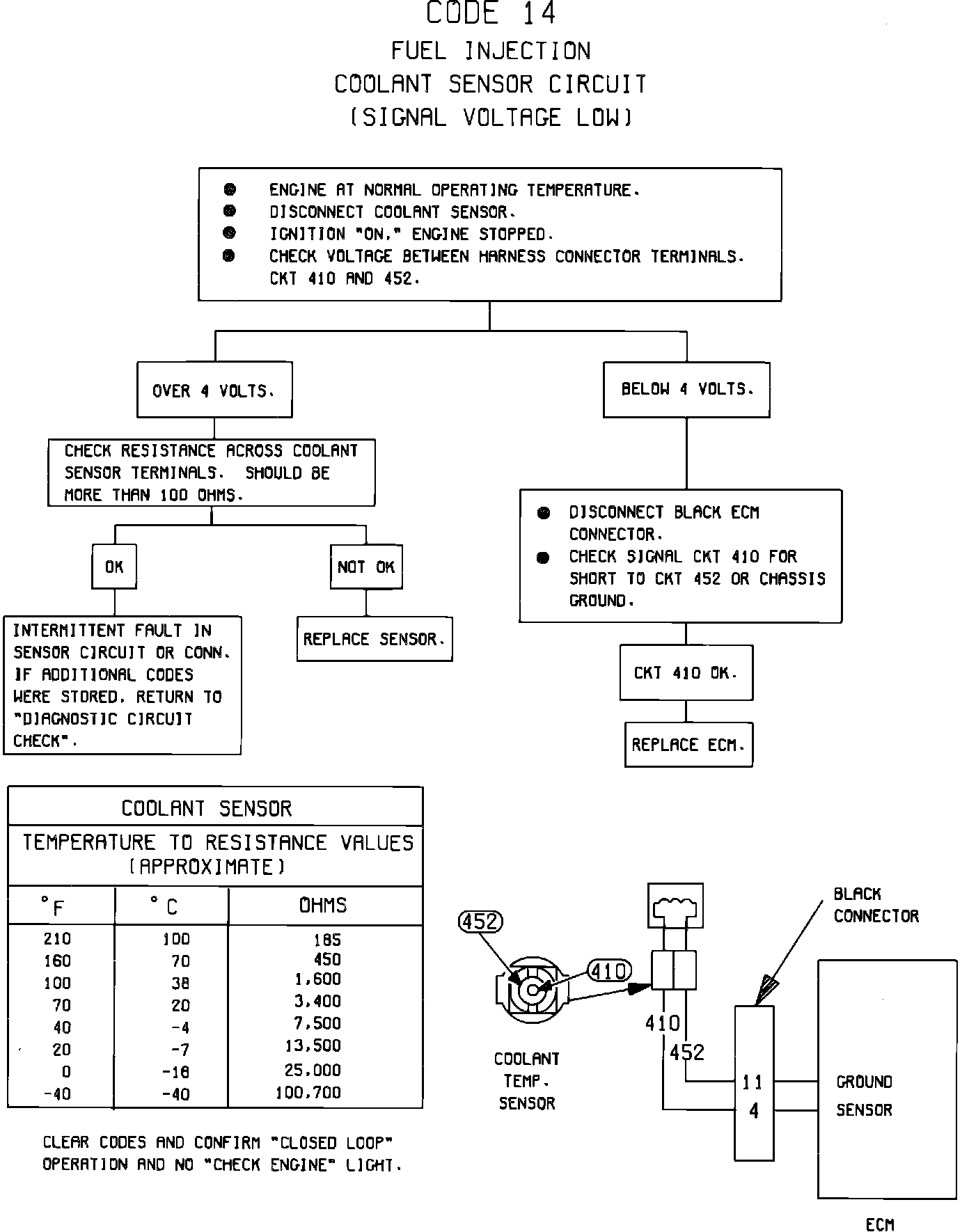 Fig. 45 CODE 14 Coolant Sensor Circuit (Signal Voltage Low) 1982-83: