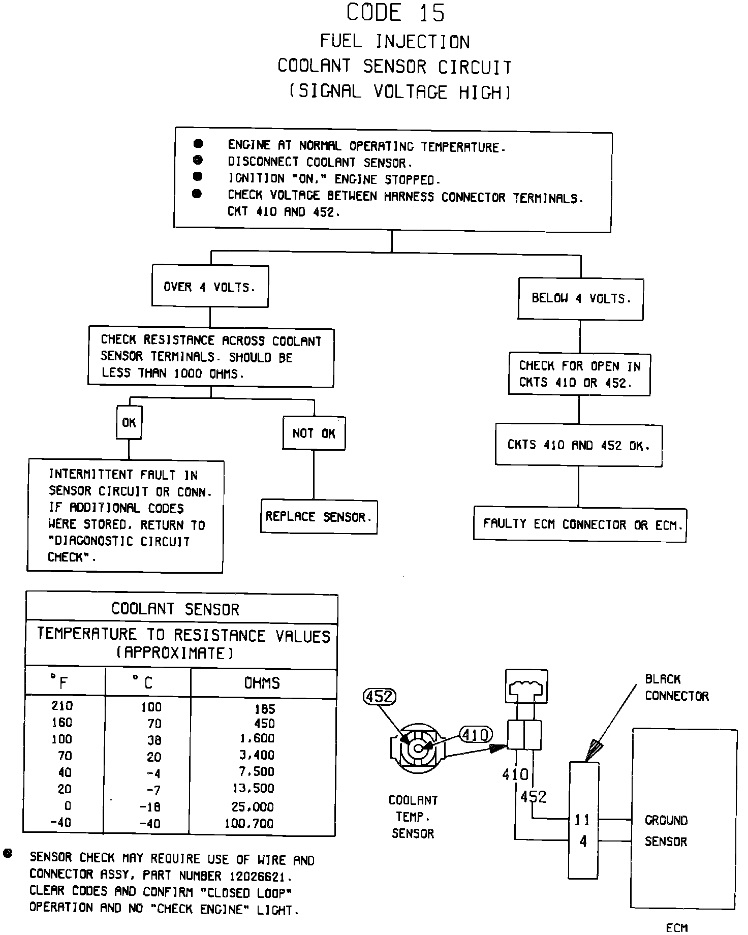 Fig. 46 CODE 15 Coolant Sensor Circuit (Signal Voltage High) 1982-83: