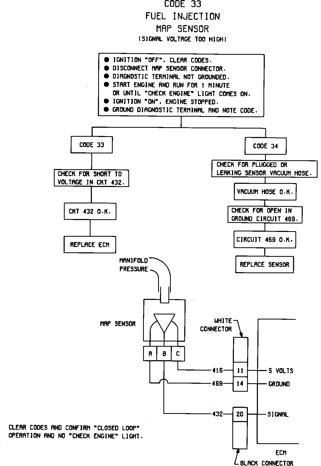 Fig.54 CODE 33 MAP Sensor Circuit (Signal Voltage High) 1982-83: