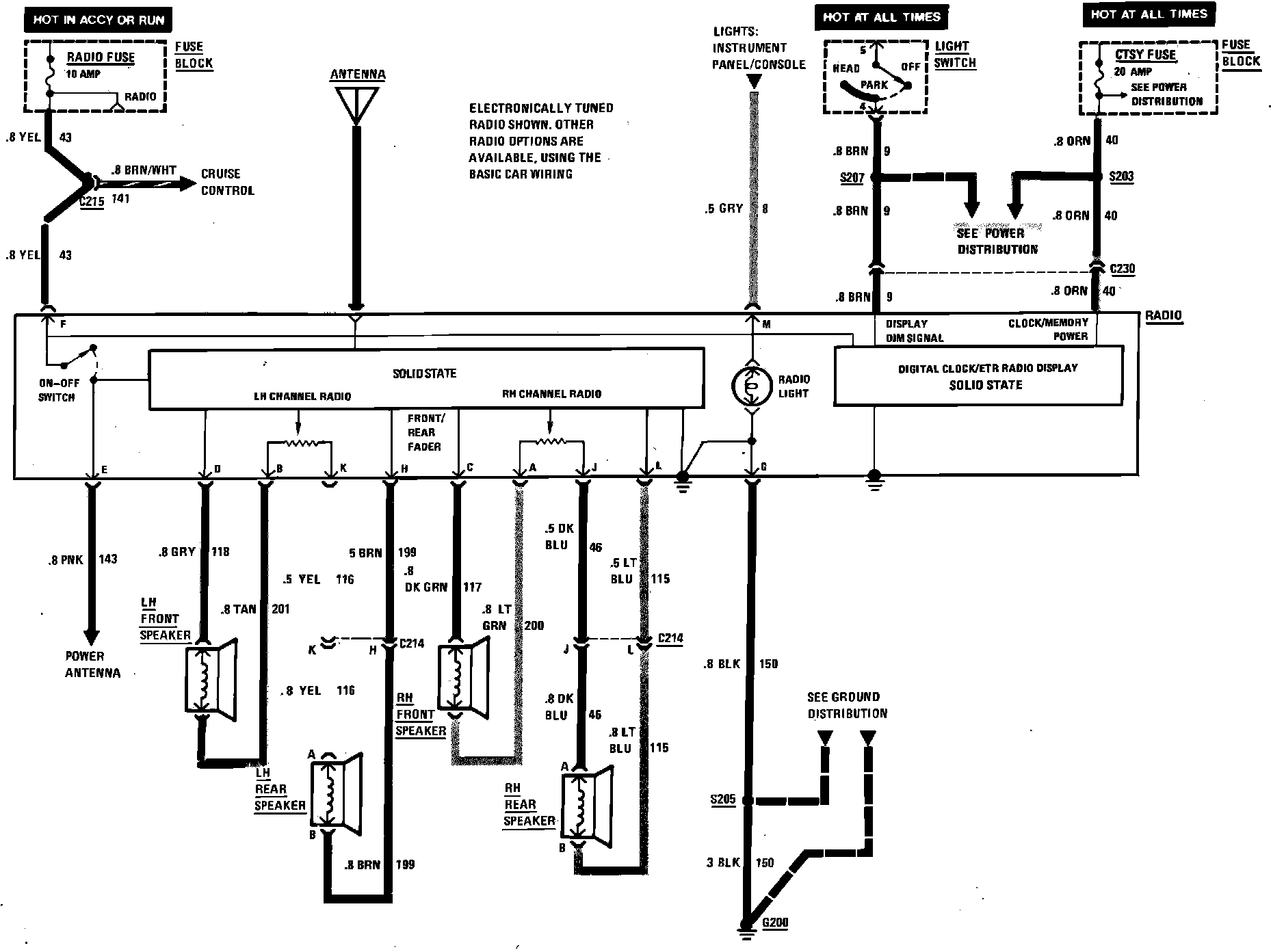 Radio & Speaker Wiring Circuit (Stereo W/Electronic Tuning):