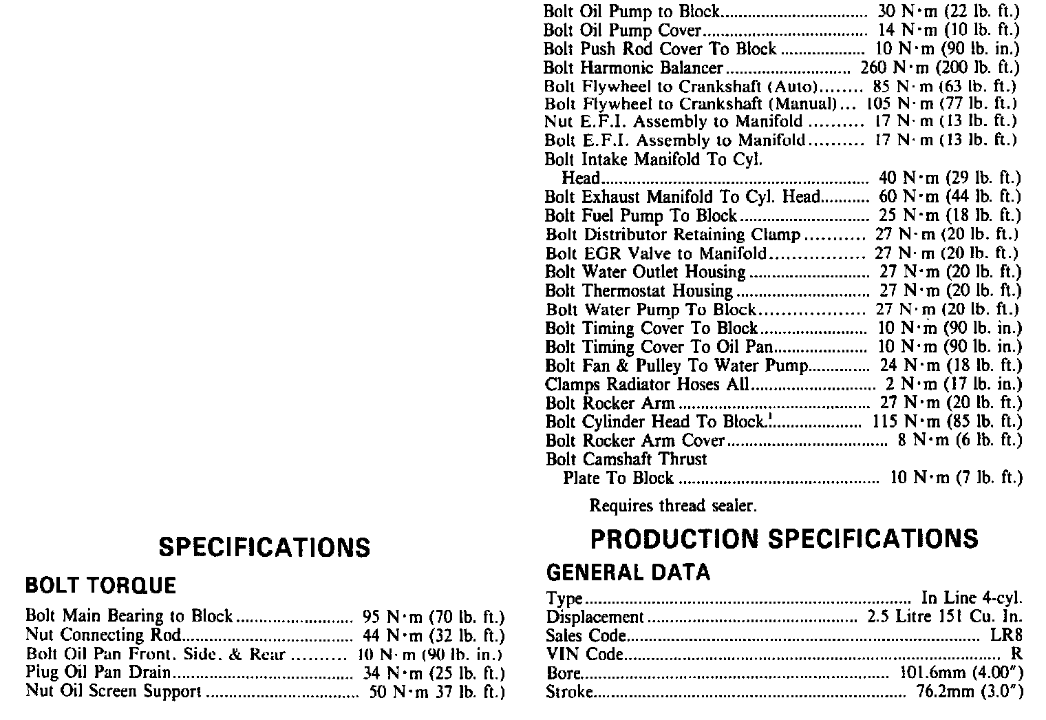 Torque & Engine Specifications:
