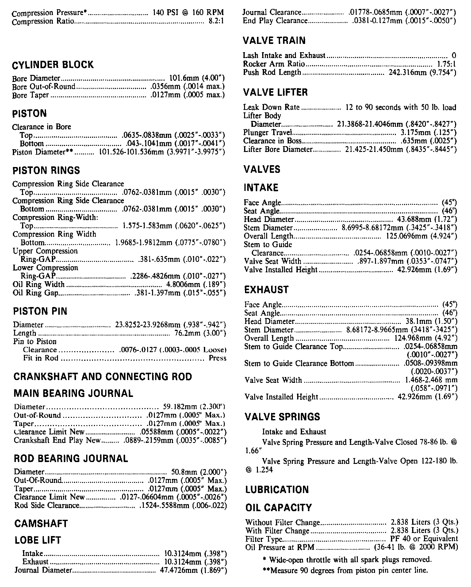 Continued Engine Specifications: