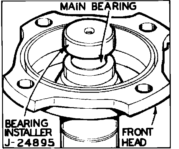 3. Align new bearing and front head bearing bore with installer tool J-24895, and drive new bearing into head, Fig. 22.