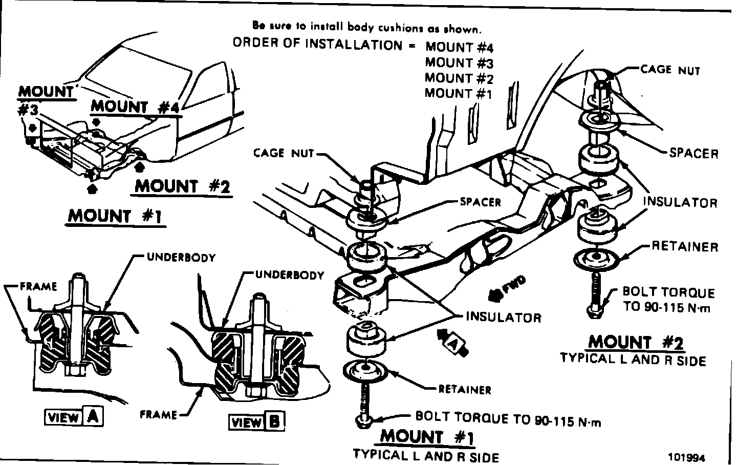 2. Engine cradle alignment will influence idle quality. The cradle should be properly aligned using the following procedure: