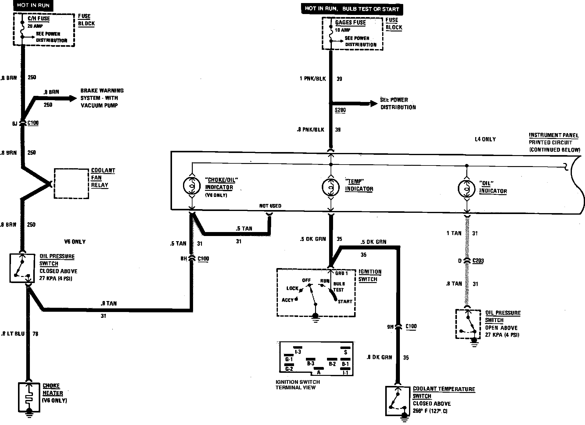 Choke Heater & Instrument Panel Indicators Wiring Circuit (Less Gauges):
