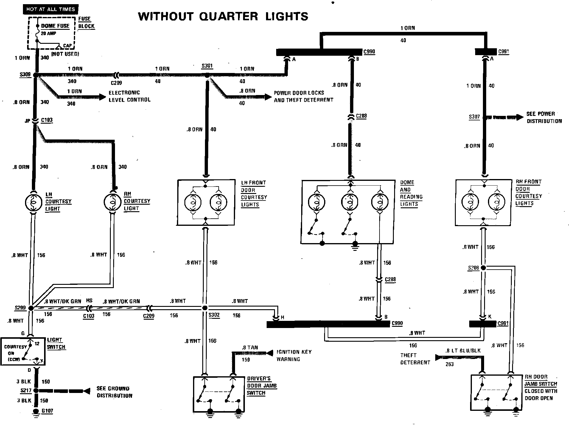 Courtesy Lights Wiring Circuit (Less Quarter Lights):
