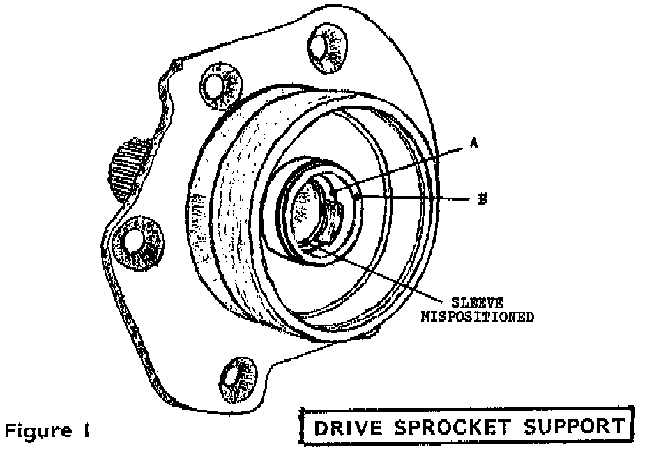 One or more of the above problems could be caused by the drive sprocket support. The steel sleeve on the sprocket end can move -- resulting in blocked passages, as in Figure 1.