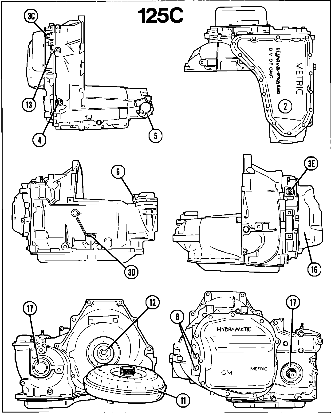 1. Clean all residual oil from the transmission, concentrating on the transmission oil pan to case mating areas (all models), T.V. cable connector (all models), transmission oil pan to sprocket cover interface area (325-4L model), final drive to case connection (325-4L model), valve body cover to transmission oil pan interface area (125C model) (C.R.C.'s electramotive cleanser, or equivalent is recommended).