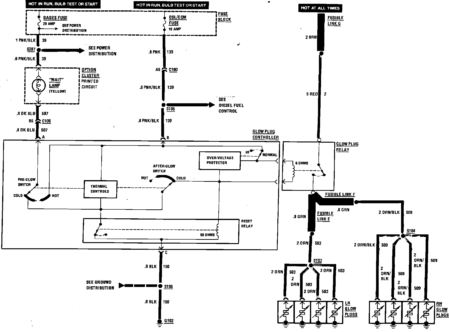 Diesel Engine Glow Plug Control Wiring Circuit: