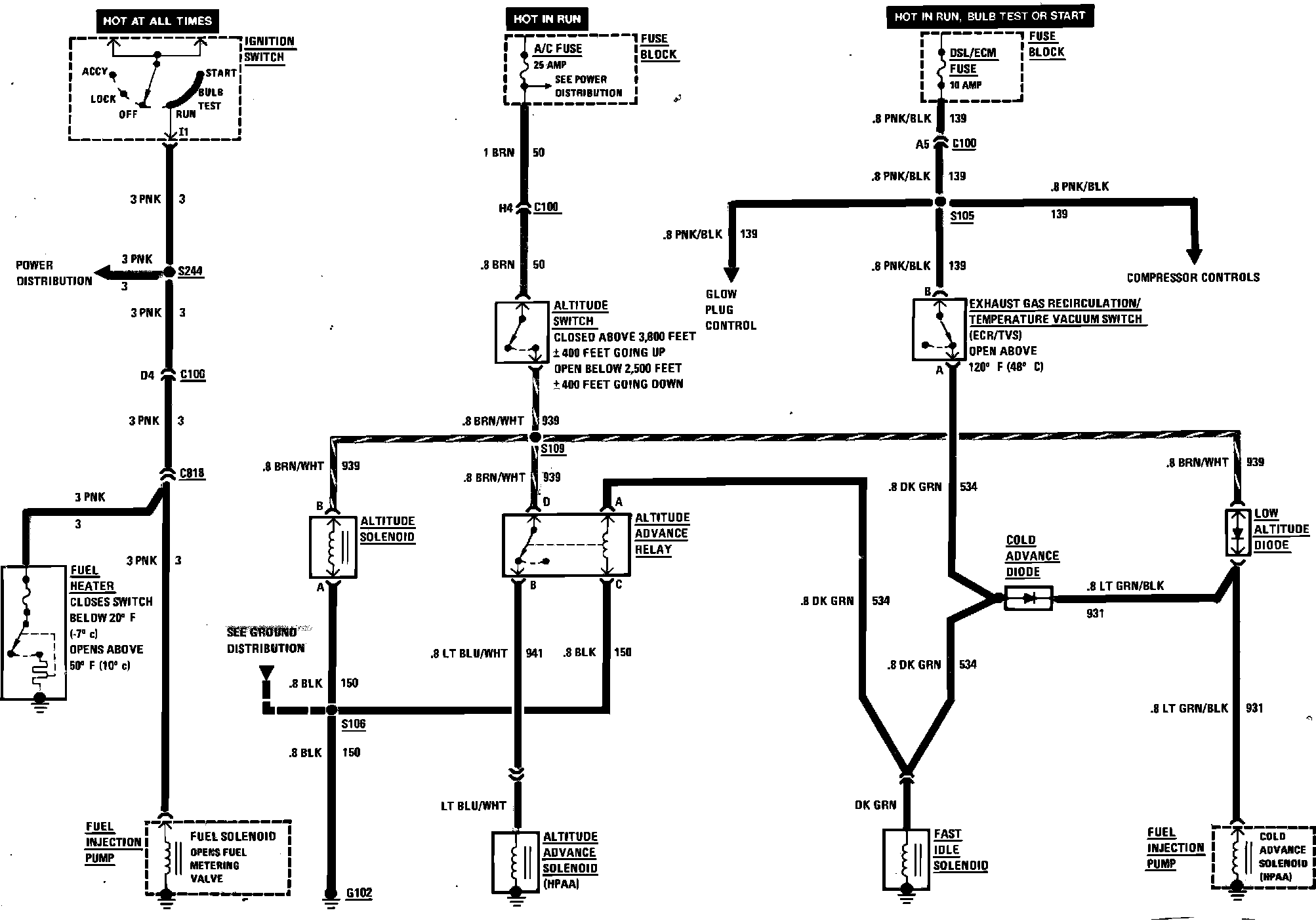Diesel Engine Fuel Control Wiring Circuit Exc. High Altitude: