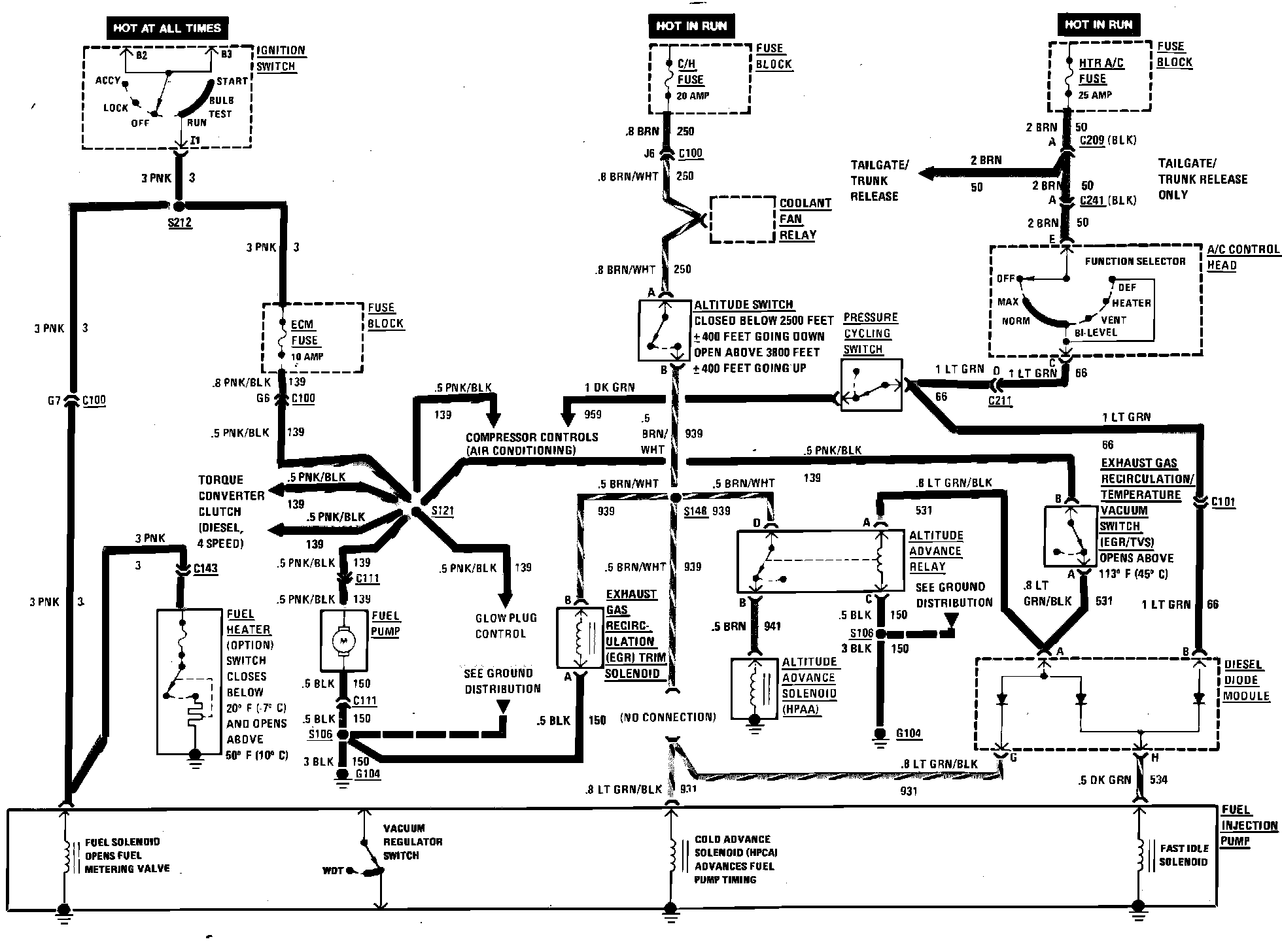 Diesel Engine Fuel Control Wiring Circuit Except Calif. & High Alt.: